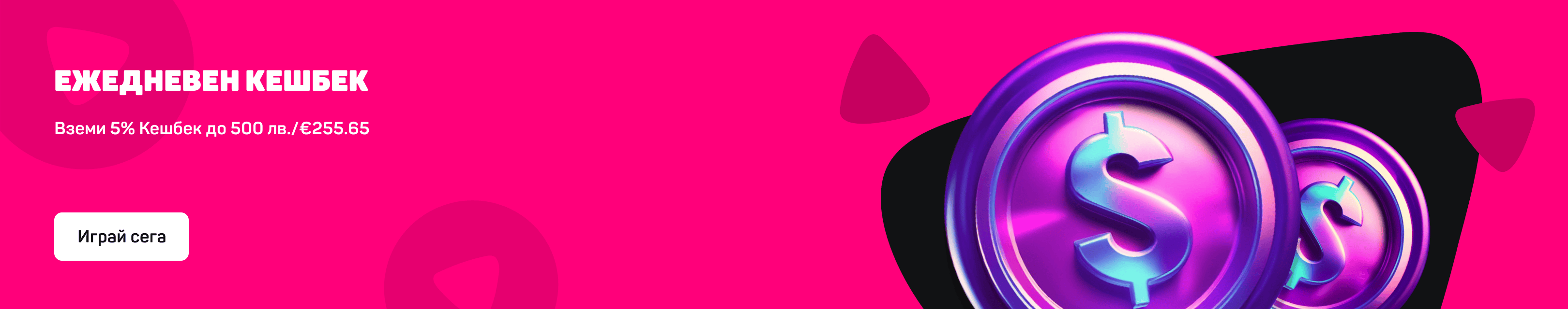 Кешбекът се натрупва в рамките на един календарен ден от 00:00 ч. до 23:59 в същия ден. Предоставения Кешбек Бонус е Неограничаващ Бонус. Залози се поставят първо със средства налични в кеш баланса на участника. След изразходването им, бонусът се активира и започва отиграването на получените бонус средства. Условията описани по-долу се прилагат, единствено за залозите направени с бонус средства и/или получените печалби от безплатни завъртания. Бонус средства от Кешбек Бонус трябва да бъдат отиграни 35х (тридесет и пет пъти). Максималната сума, която потребител може да получи като Кешбек Бонус е 5% до 500 лв./€255.65. Изискванията за отиграване започват в момента, в който предоставяният бонус се кредитира по игралната сметка на клиента. Изискването за отиграване трябва да бъде изпълнено в рамките на 1 ден след получаване на бонус средствата по игралната сметка. Максималният залог, който е позволен с бонус средства е в размер на 5 (пет) лева/€2.56, като това условие се прилага за целия игрален рунд включвайки опцията за удвояване в определени игри. Прилага се таван на печалбите и възможната сума за конвертиране към истински пари и налична за изтегляне в резултат от игра с бонуси постъпили по игралните сметки от промоция в размер на 1000 лв./€511.29. След изпълнение на условието за отиграване, наличните бонус средства от предоставения бонус се кредитират по баланса с истински пари, като играча има възможност да поставя нови залози без ограничение или да извърши теглене. В случай че участник, поставя залози с истински пари, спечели безплатни игри или бонус в дадена игра и не завърши рунда, а излезе от играта и го остави в прогрес, с цел поставяне на залози с бонус средства губи предоставеният бонус и натрупаните печалби по него, като същия се премахва. Същото правило се прилага и в случаите, в които участник закупи бонус използвайки функцията Buy Bonus, който не отиграе своевременно, с цел поставяне на залози с бонус средства. Бонус средствата от настоящата промоция, могат да се използват за поставяне на залози само на посочените игри в категория Игра с Бонус. Промоцията Ежедневен Кешбек се ограничава до една за даден потребител, уникален IP адрес, постоянен адрес, телефонен номер, използвано устройство за достъп до страницата като персонален компютър, лаптоп, таблет или мобилен телефон, дебитна/кредитна карта, електронен портфейл. При наличие на дублиране на някои от посочените данни в настоящото правило, по повече от една игрална сметка, новорегистрираната игрална сметка автоматично губи получените бонуси, като същите се премахват. Настоящата промоция не се предлага и не е налична за игрални сметки, по които са наложени ограничения за участие в промоции и/или получаване на бонуси и оферти. Slotino си запазва правото да променя и допълва списъка с игри, които не допринасят към условията за отиграване на бонус средства и/или печалби от безплатни завъртания. Slotino си запазва правото да извършва промени по настоящата промоционална кампания, да я отмени и/или временно преустанови, като информация за това и всички промени се публикуват на интернет страницата на организатора. В допълнение към настоящите правила се прилагат и Общи Правила и Условия и Бонус Правила и Условия на Slotino.