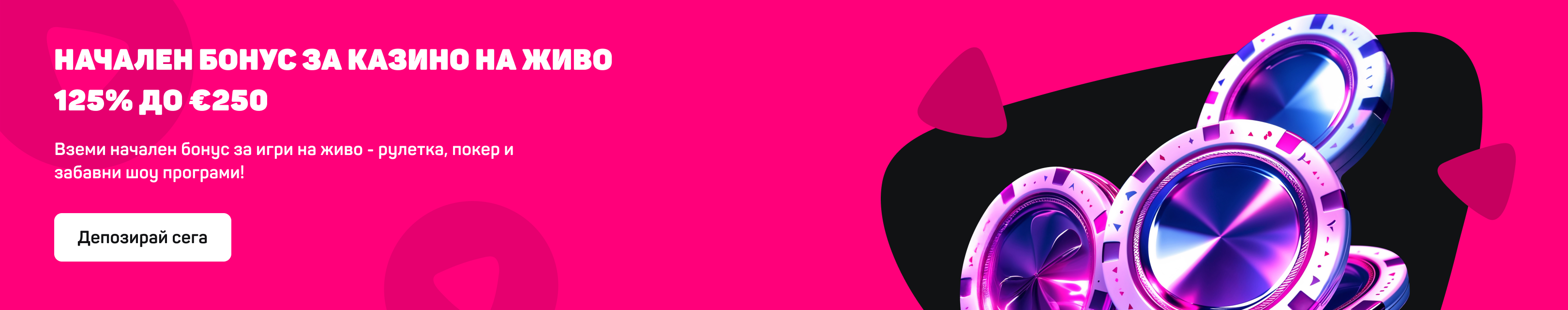 Тази промоция е налична за всички регистрирани играчи, притежаващи активна игрална сметка в Slotino, по която не са наложени ограничения за участие в промоционални кампании и/или получаване на бонус оферти. Промоцията Казино на Живо Бонус 125% до 500 лв./€255.65 е налична за всички новорегистрирани играчи след 23.04.2024 година. Промоцията е в сила от 23.04.2024 до 30.03.2026 година. За новорегистриран играч се счита всяка новорегистрирана игрална сметка за период от 7 дни след направата на регистрация. В рамките на посочения 7 дневен период, всеки участник има възможност да се възползва от текущата промоция. Казино на Живо Бонус е в максимален размер от 125% (сто двадесет и пет процента) до 500 (петстотин) лева/€255.65 бонус средства, налични след извършването на класиращ се депозит и активиране на бонус оферта от меню Бонуси. Депозити извършени посредством ePay микро сметка, EasyPay и FastPay са изключени от настоящата промоция и не се класират за настоящата промоция. Прилага се изискване за минимален депозит в размер на 10 (десет) лева/€5.11 или по-голям за получаване на Казино на Живо Бонус в размер на 125% до 500 лв. Максималната сума на бонус, кредитиран по игрална сметка е в размер на 500 (петстотин) лева/€255.65, като за целта е необходим успешен депозит в размер на 400 (четиристотин) лева/€204.52 или по-голям. Прилага се таван на печалбите и възможната сума за изтегляне в резултат от игра с Казино на Живо Бонус в размер на 5,000 (пет хиляди) лева/€2556.46. Предоставения депозит бонус е Неограничаващ Бонус. Залози се поставят първо със средства от кеш баланса на участника. След изразходването им, бонусът се активира. Условията описани по-долу се прилагат, единствено за залозите направени с бонус средства. Изискванията за отиграване започват в момента, в който предоставяният бонус се активира и се извърши залог с бонус средства. Бонус средствата от настоящата промоция, могат да се използват за поставяне на залози само на игри от посочените категории Шоу Програми, Покер Игри, Рулетки. Бонус средствата трябва да бъдат отиграни 5х (пет пъти) преди да бъдат превърнати в истински пари, като допринасянето на всеки един залог към отиграването на бонус средствата, е спрямо всеки вид игра както следва:
